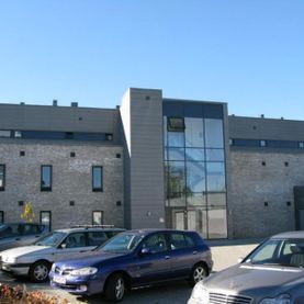 Veggkledning med paneler av VM-zink samt beslag av lakkert aluminium.